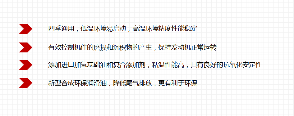 采用進(jìn)口加氫基礎(chǔ)油和進(jìn)口復(fù)合添加劑調(diào)和配制,四季通用,低溫環(huán)境易于啟動,高溫環(huán)境粘度性能穩(wěn)定,有助于控制機(jī)件的磨損和沉積物的產(chǎn)生,保護(hù)發(fā)動機(jī)正常運(yùn)轉(zhuǎn);